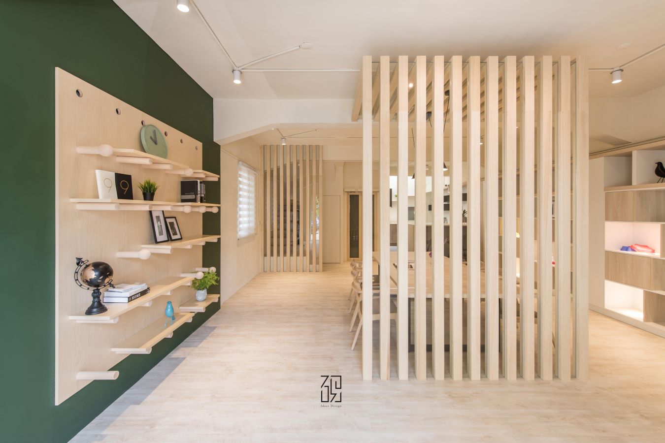 This commercial interior design plan is the exhibition space of the products by the Taiwanese company specializing in producing silicon products. For the company advocating the idea of environmental protection, this interior design plan focuses on recycling the old building structures, thus conveying the concepts reducing plastic materials and devoting to environmental protections. The design scope solving over-packaging issues encompasses the original structures, beams and columns, ceilings, façade renovation and interior decoration. The main design idea is based on the Japanese minimalist design style that the white and woods comprehensively decorated on the building façade and in the house manifest the invigorating attraction. The various colors and lines, furthermore, create the minimalist and refined impressions as well.